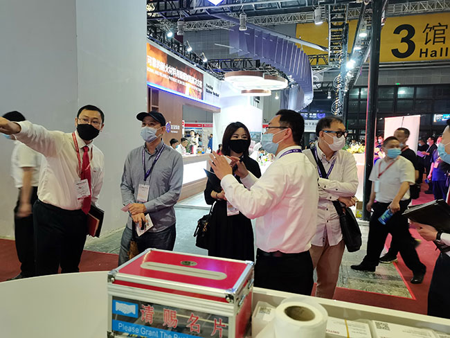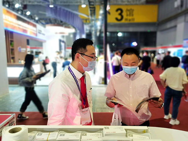 展会现场,球速体育销售经理热力十足,雄心勃勃,对每一位客户进行专业讲解。