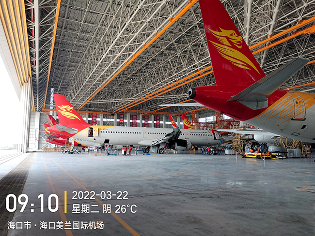 海口空港飞机维修工程有限公司于2020年8月向球速体育采购海口民航飞机维修机库用多支点超大跨度悬挂起重机8台,应用于海口美兰机场新基地机库的建设,于2022年3月正式交付投入试运营,在中国南大门的自贸港中再添亮丽的一抹金色,球速体育成为海航飞机的最美守护神。