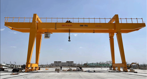 采用柔性技术和优化设计的球速体育200tx52m双梁门式起重机,如大漠雄鹰,屹立在内蒙古乌兰察布市运达风电智能产业基地。